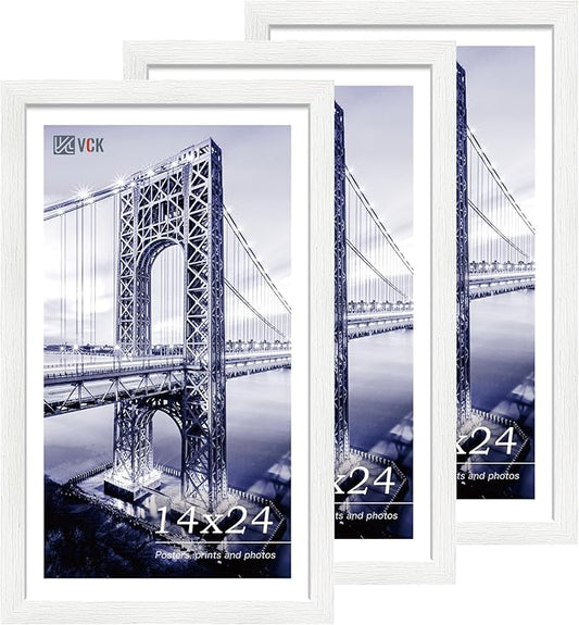 VCK 14x24 Picture Frame Set of 3, White Solid Wood Poster Frames, Textured Exclusive Wall Gallery Frame