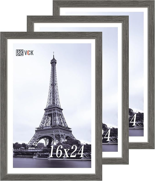 VCK 16x24 Frame Set of 3, Gray Solid Wood Poster Picture Frame, Exclusive Wood Grain, Wall Gallery Frame