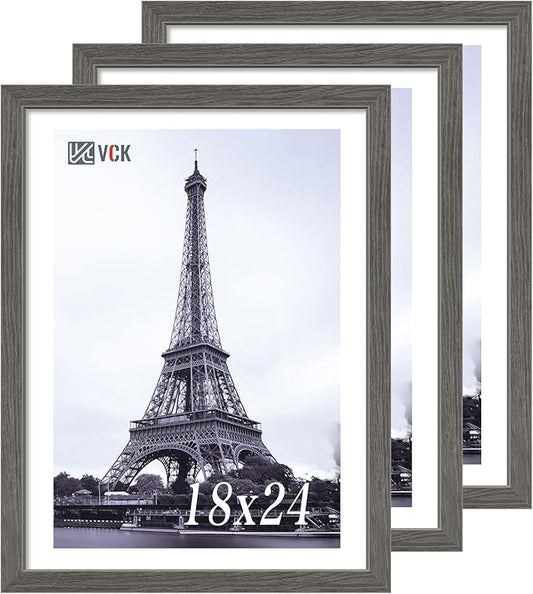 VCK 18x24 Frame Set of 3, Gray Solid Wood Poster Picture Frame, Exclusive Wood Grain, Wall Gallery Frame