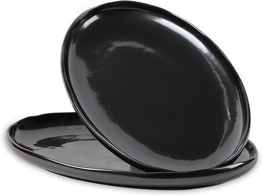 vicrays Serving Platter Ceramic Tray Plates Extra Large Oval 14.5 Inch Porcelain Dinner Plates Long Serving Dish Set Entertaining Party Restaurant Food Meat Sushi Fish Turkey Platter - Black