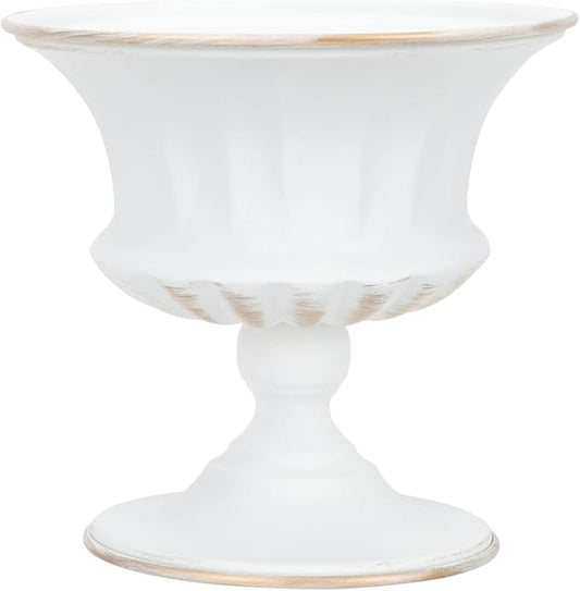 POPETPOP Tall Urn Vase Retro White Metal Urn Planter Pedestal Flower Pot Rustic Farmhouse Flower Holder for French Country Style Home Table Centerpiece Decor,5.9x5.9x7.47 inches