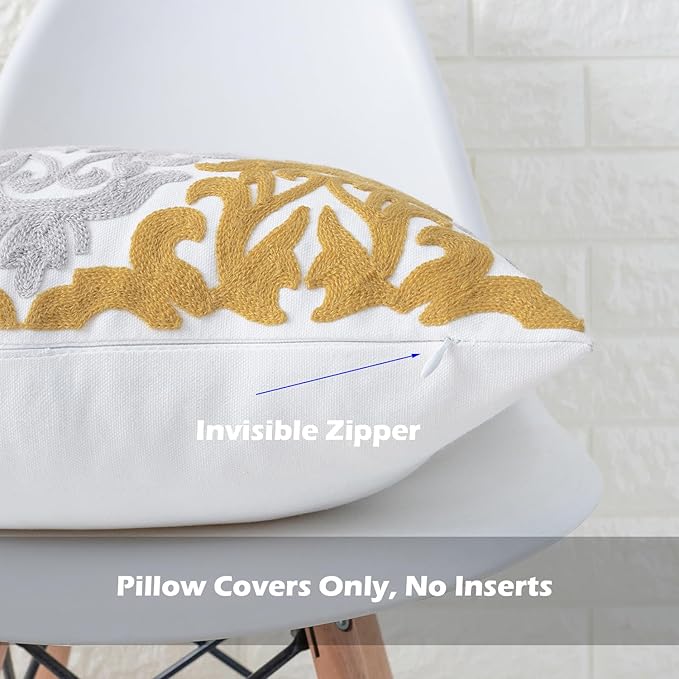 - Size & Material: This 18 x 18 inch (18 by 18) square throw pillow cover is made of 100% thick cotton canvas for durability. The crisp white fabric is soft yet sturdy, featuring beautiful single-sided embroidery for an elegant touch