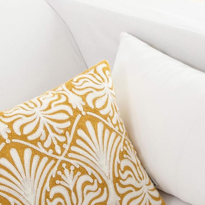 HWY 50 Mustard Yellow Decorative Lumbar Pillow Cover Rectangle 12x20 Inch (1 Piece), Embroidered Cotton Farmhouse Cushion Cover Pillow Case for Sofa Couch Living Room Bed, Minimalist Floral