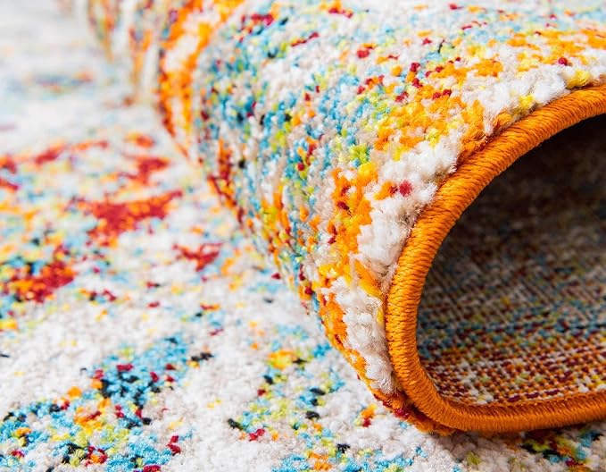 Unique Loom Rosso Collection Vintage, Traditional, Bohemian, Geometric, Distressed, Southwestern Area Rug, 8' 0" x 8' 0", Beige/Orange