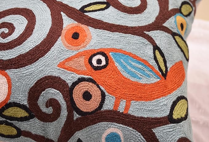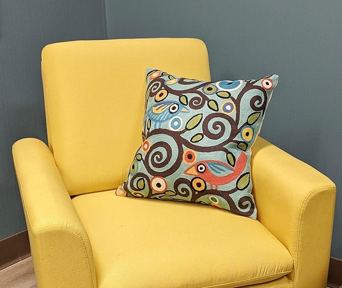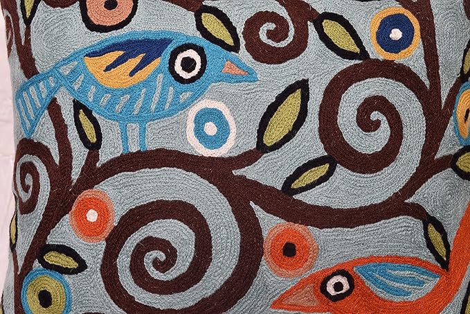 - π DYNAMIC COLORS AND MOTIF DESIGN: These unique hand embroidered Teal Blue Birds floral tree of life toss pillow covers would bring together the artistic elements of any room, creating a harmonious design and perfect air of sophistication. Pillow insert not Included, Zipper closure on back. Pillow Cover Size: 18 x 18" (45 x 45 cms) Approx. Pillow Cover is not Reversible, Backing: Canvas (See additional Pictures)