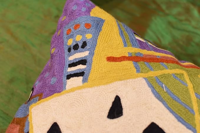 - π MODERN THROW PILLOW COVER - HAND EMBROIDERED: These colorful decorative modern throw pillow covers are inspired by the art of Kandinsky and are hand embroidered in soft wool to perfection, stitch by stitch, by the finest artisans, creating an extraordinary all modern abstract pillow for your home decor. A close-up view of this all modern accent pillow cover allows you to see the amazing fine chain-stitch hand embroidery. A perfect modern sofa pillow for your contemporary couch.