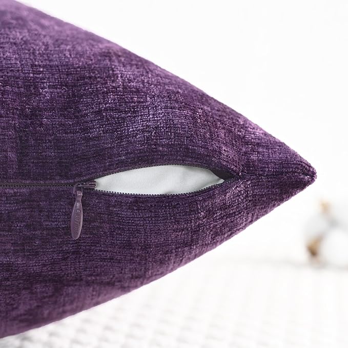 CaliTime Throw Pillow Covers Decorative 12 X 20 Inches Pack of 2 Cozy Chenille Cushion Cases for Couch Sofa Bed Living Room Home Plum Purple