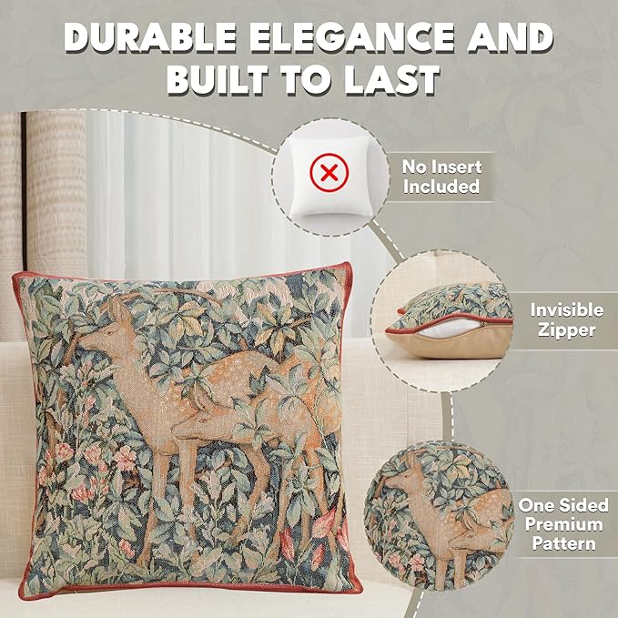 - Timeless Durability: Elevate your decor with our skin-friendly William Morris pillow covers 14βX14β, where quality and style come together. A sturdy hidden zipper ensures easy pillow insertion/removal, while the overlock stitches prevent seam ripping. Unlike thin printed cushion covers prone to tearing, our decorative pillows for couch with a super-soft backside are crafted with thick premium threads for long-lasting quality. THE PACKAGE INCLUDES A SINGLE TAPESTRY PILLOW COVER WITHOUT AN INSERT