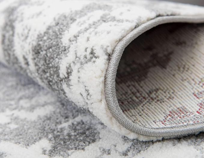 Unique Loom Rosso Collection Vintage, Geometric, Bohemian, Traditional, Distressed, Southwestern Area Rug, Round 4' 0" x 4' 0", Light Gray/Ivory
