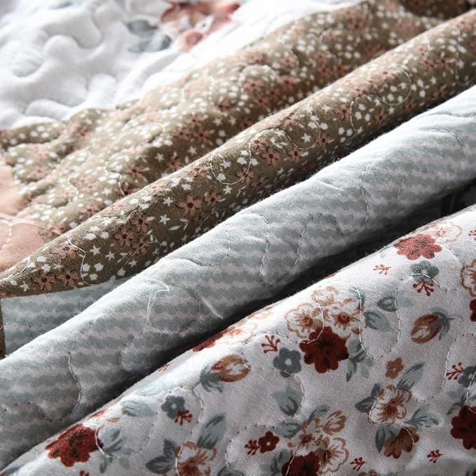 NEWLAKE Quilt Bedspread Sets-Checkered Floral Reversible Coverlet Set,Queen Size