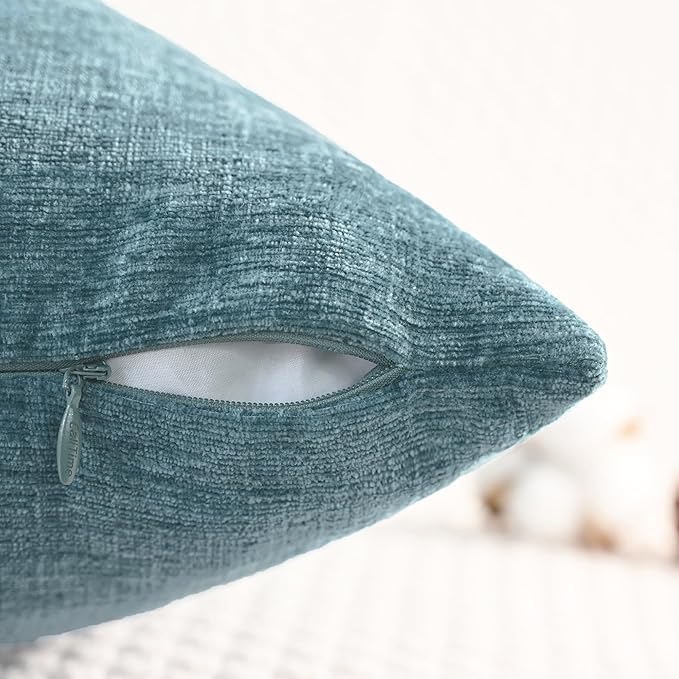 CaliTime Throw Pillow Covers Decorative 20 X 20 Inches Pack of 2 Cozy Chenille Cushion Cases for Couch Sofa Bed Living Room Home Smoke Blue