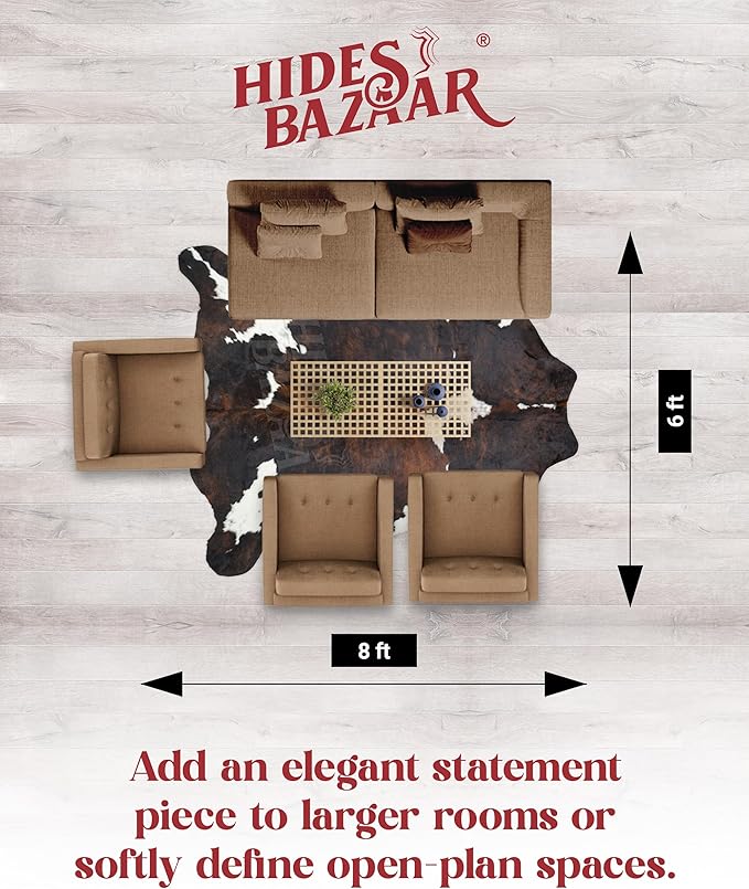 - Unmatched Elegance in Every Cowhide: Add a touch of rustic charm with our white brown and black area rug. Featuring a unique blend of dark, rich tones and patterns, our cow skin rug brings a sophisticated visual interest to any space.