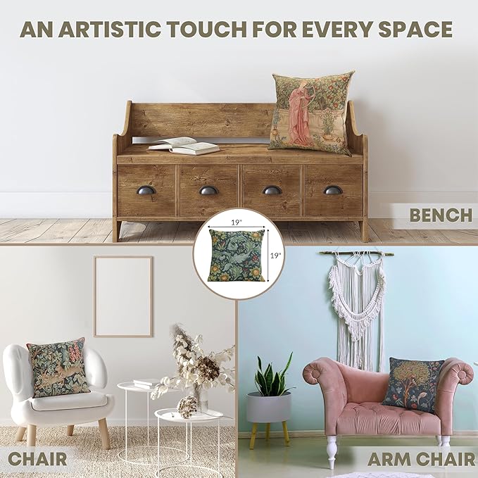 - Timeless Durability: Elevate your decor with our skin-friendly William Morris pillow covers 19βX19β, where quality and style come together. A sturdy hidden zipper ensures easy pillow insertion/removal, while the overlock stitches prevent seam ripping. Unlike thin printed cushion covers prone to tearing, our decorative pillows for couch with a super-soft backside are crafted with thick premium threads for long-lasting quality. THE PACKAGE INCLUDES A SINGLE TAPESTRY PILLOW COVER WITHOUT AN INSERT