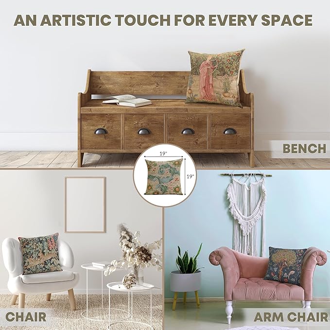 - Timeless Durability: Elevate your decor with our skin-friendly William Morris pillow covers 19βX19β, where quality and style come together. A sturdy hidden zipper ensures easy pillow insertion/removal, while the overlock stitches prevent seam ripping. Unlike thin printed cushion covers prone to tearing, our decorative pillows for couch with a super-soft backside are crafted with thick premium threads for long-lasting quality. THE PACKAGE INCLUDES A SINGLE TAPESTRY PILLOW COVER WITHOUT AN INSERT