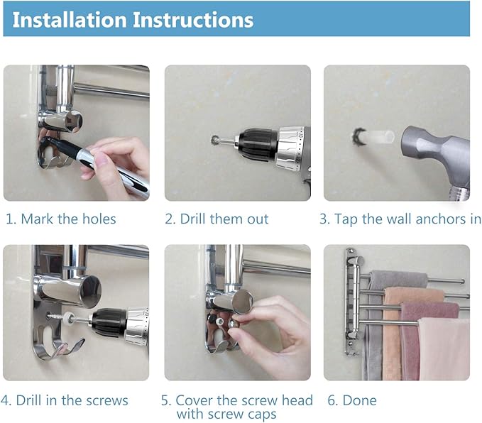 - STURDY & DURABLE- Made with rustproof materials and SUS304 stainless steel, this towel rack is corrosion-resistant, long-lasting and easy to clean.