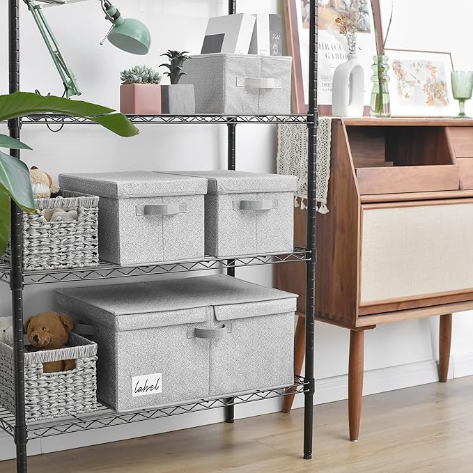 - 【Versatile Function】The large fabric storage box with lid is perfect for organizing the closet, shelf, bedroom, play room, living room, wardrobe, laundry room, office, RV, and camping.
