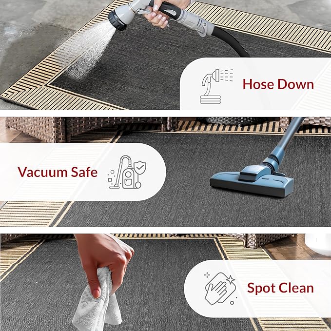 - Stylish & Versatile Design: This Bordered Indoor/Outdoor rug boasts a captivating aesthetic. Its Bordered pattern and unique prints bring a touch of flair to any room, ensuring lasting style in your living room, patio, or deck.