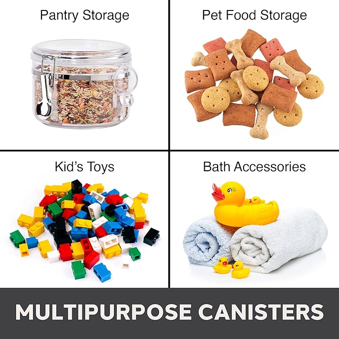 - VERY VERSATILE 38 fl oz CONTAINER: Great for storing cookies, sugar, flour, cereal, pasta, coffee, tea, spices, candy, rice and any other dry kitchen staples. Use the included scoop to help access contents.