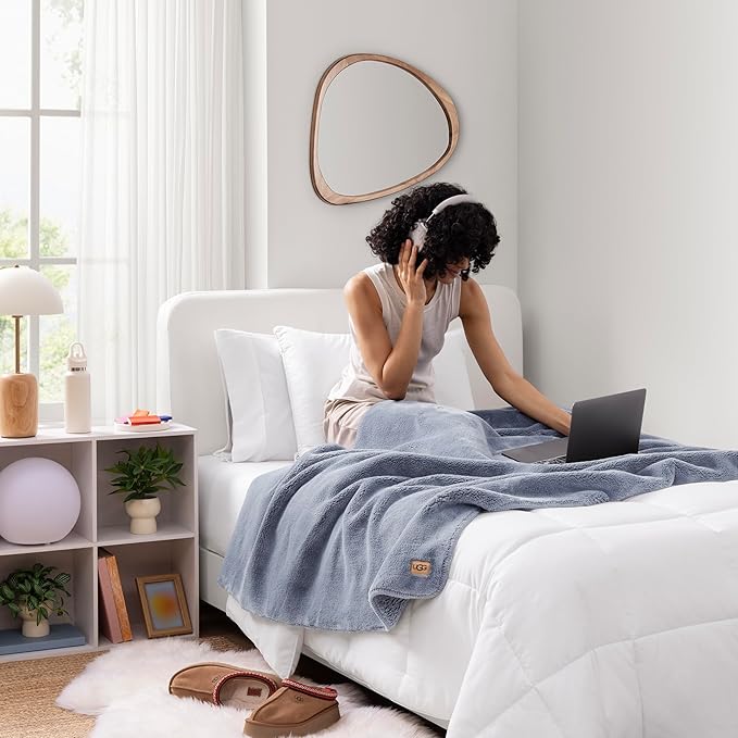 UGG Whitecap Plush Throw Blanket Fleece Lightweight Soft Cozy Throw for Couch or Bed Luxury Home Decor for Living Room Washable Hypoallergenic Blankets for Dorm Decor, 50-inch x 70-inch, Denim Blue