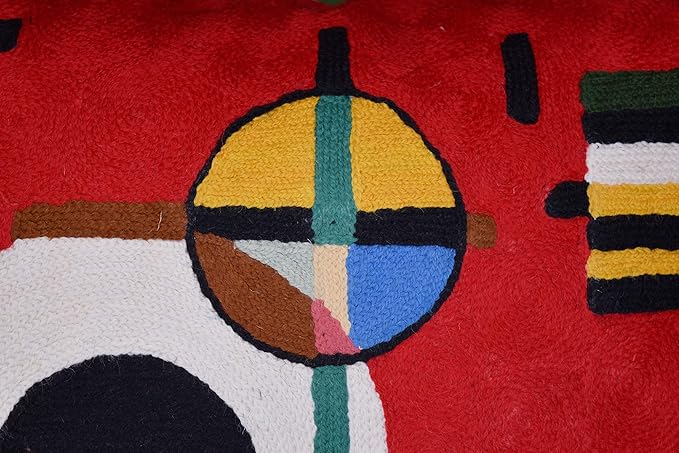 Modern Throw Pillow Cover - Kandinsky Inspired Abstract Pattern - Red - 18" x 18" - Hand Embroidered Wool - Living Room, Office, Bedroom, Outdoor
