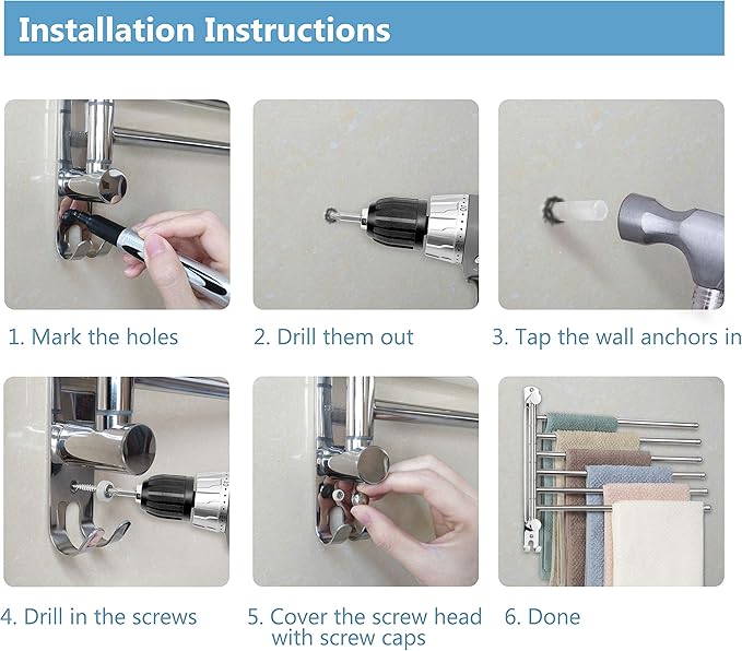 - Sturdy & Durable: Made with rustproof materials and SUS304 stainless steel, this swivel towel rack is corrosion-resistant, long-lasting and easy to clean