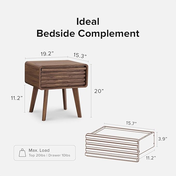mopio Ensley Nightstand, Side Table, End Table, Mid Century Modern Nightstand with Drawer, Bedside Tables, Small Nightstands with Storage, for Living Room, Bedroom (Single)