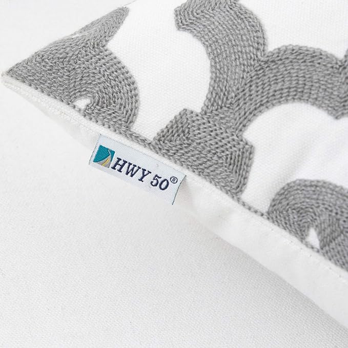 HWY 50 Grey Gray Decorative Throw Pillow Covers 18x18 Inch, Pack of 2 Embroidered Cotton Farmhouse Cushion Cover Pillow Case for Sofa Couch Living Room Bed Bedroon, Geometric Design