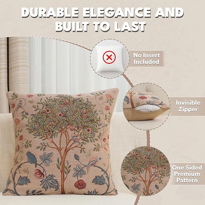 - Timeless Durability: Elevate your decor with our skin-friendly William Morris pillow covers 19βX19β, where quality and style come together. A sturdy hidden zipper ensures easy pillow insertion/removal, while the overlock stitches prevent seam ripping. Unlike thin printed cushion covers prone to tearing, our decorative pillows for couch with a super-soft backside are crafted with thick premium threads for long-lasting quality. THE PACKAGE INCLUDES A SINGLE TAPESTRY PILLOW COVER WITHOUT AN INSERT