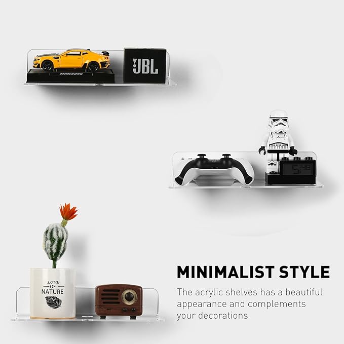 - SAVE SPACE & NEATER: Contains 2 clear acrylic floating shelves, providing multi-layer storage space, allowing you to use wall space more efficiently, and conveniently store everything while keeping your room organized.