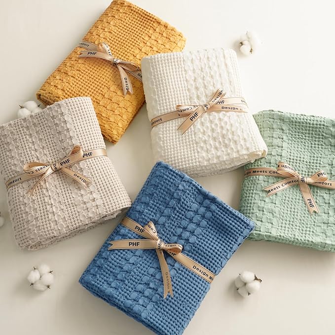 - Package Includes: PHF 100% cotton waffle weave blanket, Queen size (90" X 90"),perfect for bed couch sofa, essential daily use blanket and home decoration.PHF provides 30 days return and replacement service, worry-free purchase is guaranteed. As your satisfaction is of the utmost importance to us, please feel free to contact us if you have any questions about our products. We would try our best to solve problems within 24 hours. One time purchase, lift-time free customer service