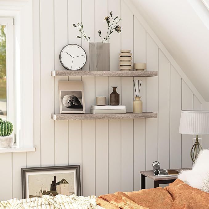 - Exquisite Wall Surface Decoration: Two classic and elegant greige wooden shelves can be placed on each wall surface of all household rooms. This floating shelf for room wall is not only for its decoration effect, but also for this wall shelves high practicality. It is an ideal place to display your beloved photos, trophies and other delicate ecorations