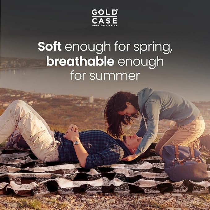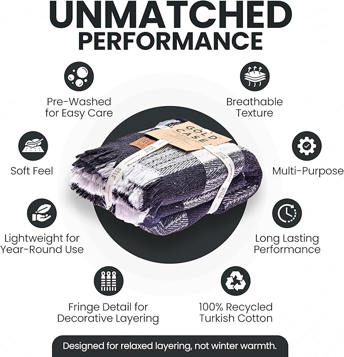 Gold Case Throw Blanket for Couch – 100% Recycled Turkish Cotton Blankets & Throws – Elegant Decorative Throw Blankets for Living Room Sofa – Woven Throws for Couch – Black – 60x80