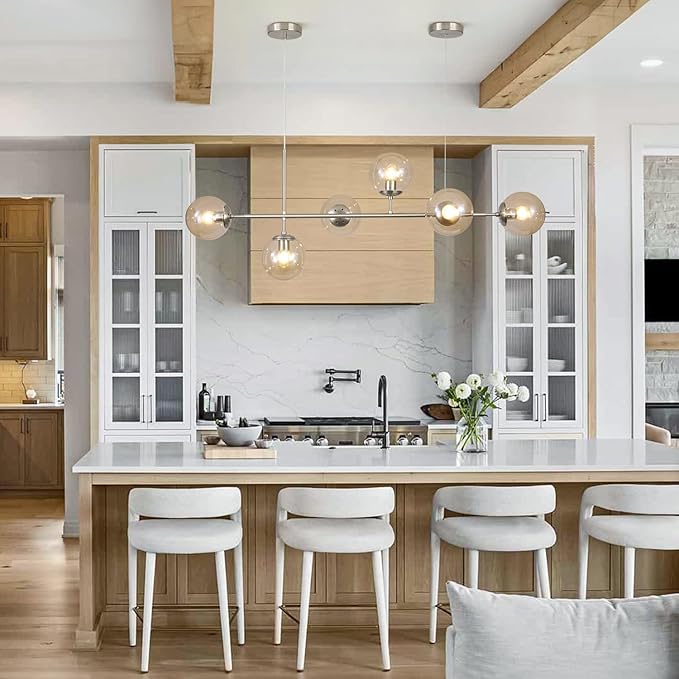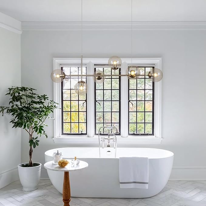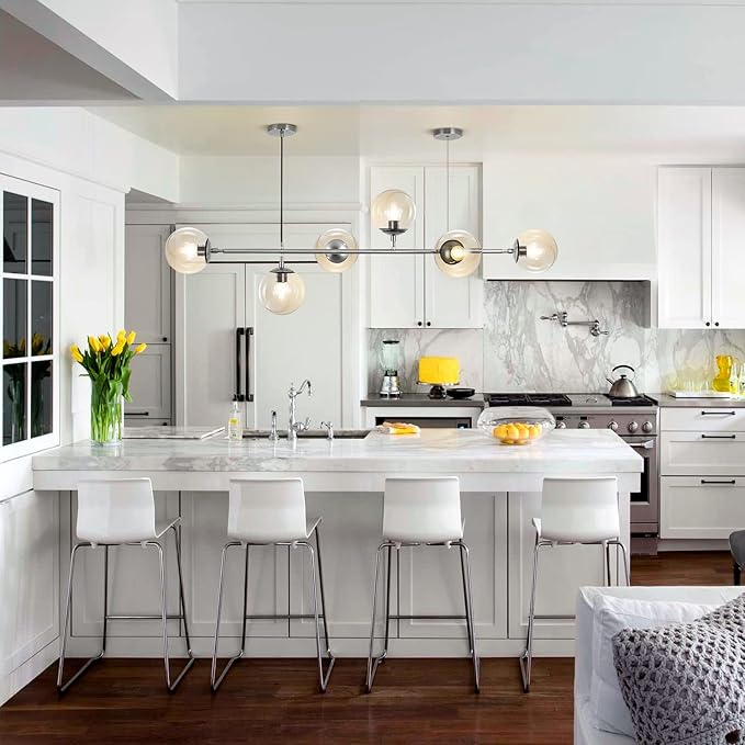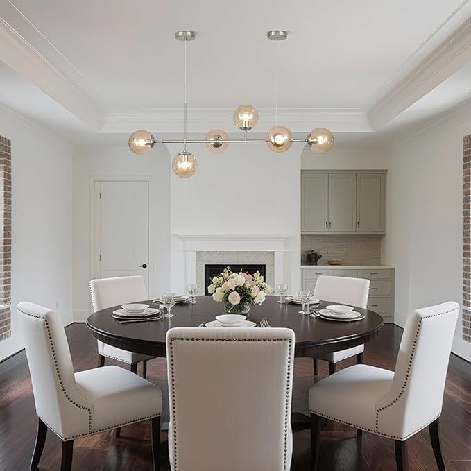 - Dining Room Light Fixture Application: The industrial hanging light emits ample glow to light up the whole space, no dark end. This 6-lights globe linear chandelier is suitable for kitchen island, dining room, kitchen sink, foyers, hallway, bedroom, living room, cafe, restaurant, study room. Itβs definitely the best choice for your home lighting