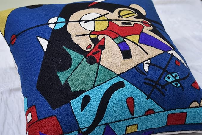 Kandinsky Modern Pillow Cover - Blue Harmony | Abstract, Contemporary, Mid Century Chair Cushion | Handmade Wool Size 18x18