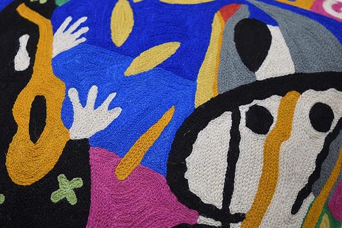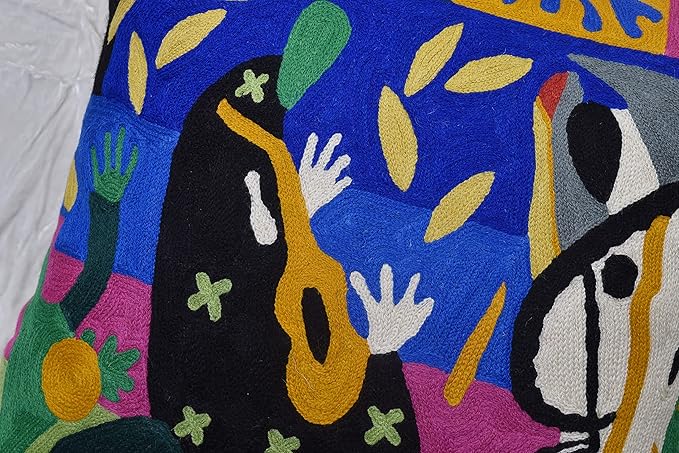 - β€ Modern Throw Pillow Cover - Hand Embroidered: Inspired by the bold and expressive style of Henri Matisse, our vibrant decorative pillow covers are meticulously hand-embroidered using soft wool. Each piece is crafted with painstaking attention to detail by skilled artisans, resulting in a striking abstract design that adds a touch of artistic elegance to your home decor. A closer look reveals the exquisite craftsmanship of fine chain-stitch hand embroidery, making this contemporary accent pillow a true work of art.