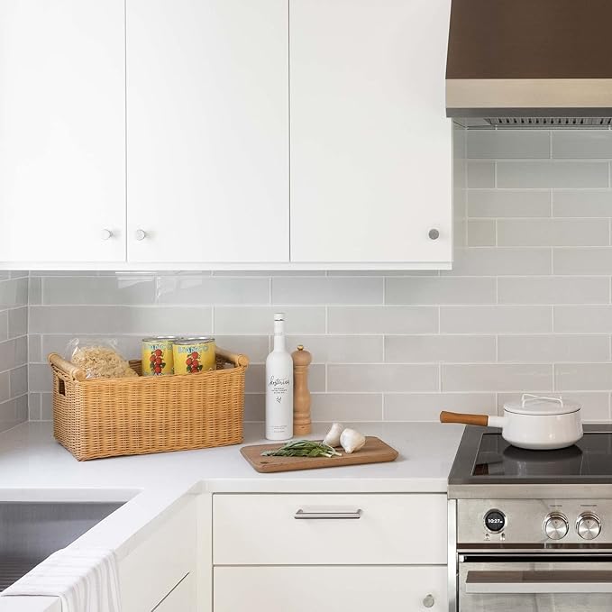 - Hand-woven from natural rattan, these wicker baskets make for an elegant storage solution on a shelf, built-in, closet or entryway.
