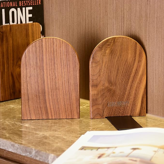 - [Heavy Duty Book Ends For Heavy Books]:Wooden book ends has a L design with thicker and stable bottom + metal base,which makes it stable to store heavy books or binders, perfect for office desk.Fine craft wooden book ends can blends with your bookshelves. Heavy duty walnut bookends for heavy books