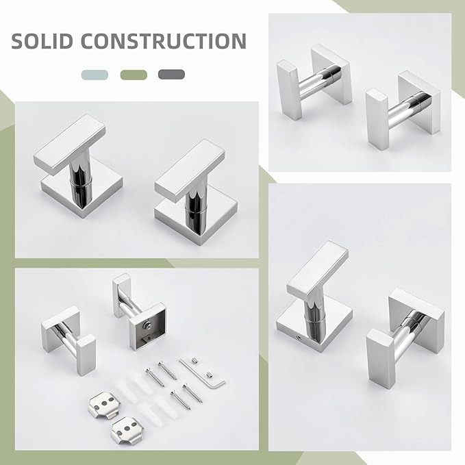 Angle Simple Bath Towel Hook 2 Pack, Stainless Steel Square Robe Coat Holder for Wall, Bathroom Kitchen Garage Wall Hook for Hanging Tools, Polished Chrome