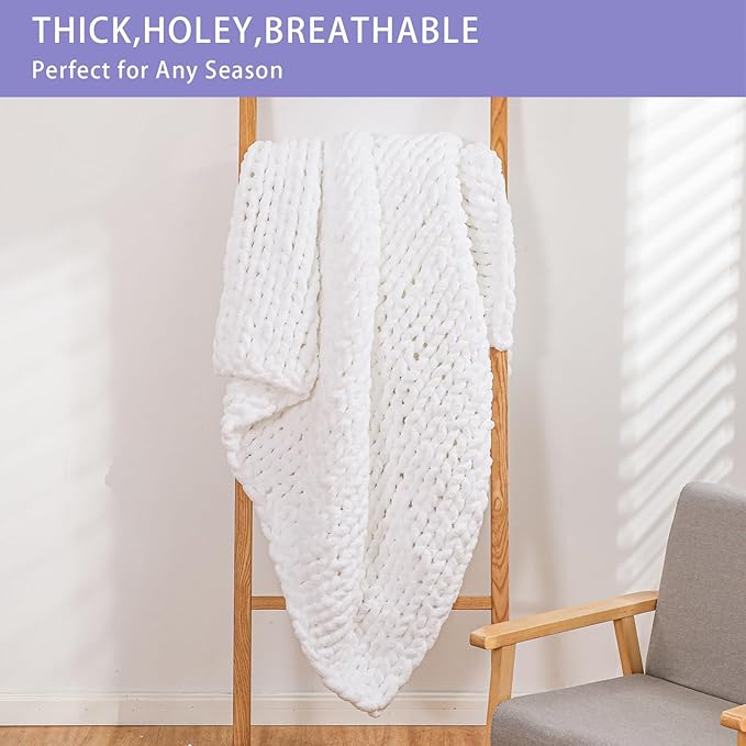 - Holey Chunky Knit Blanket: Our chunky throw blanket is 100% hand knit with cute holes, the special holey feature and classtic pattern make this plush blanket a great art dΓ©cor throw blanket for couch, bed and sofa, bringing you warmth without overheating