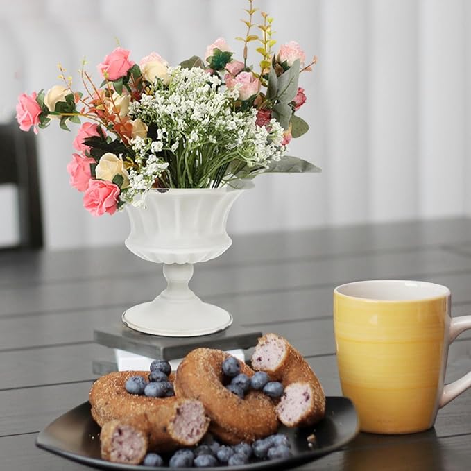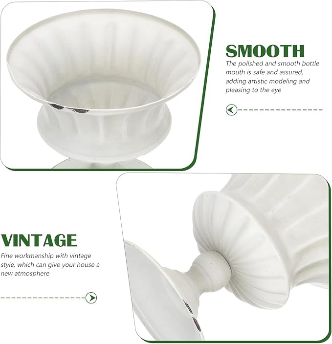 Urn Planter Antique Column Plant Pot Shabby Chic Metal Vase Pillar Plant Container Wedding Centerpieces Vases for Front Porch Decor White White Planter