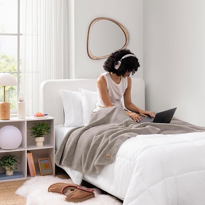 UGG Whitecap Plush Throw Blanket Fleece Lightweight Soft Throw for Couch or Bed Luxury Home Decor for Living Room Washable Hypoallergenic Blankets for Dorm Decor, 50-inch x 70-inch, Light Grey Seal