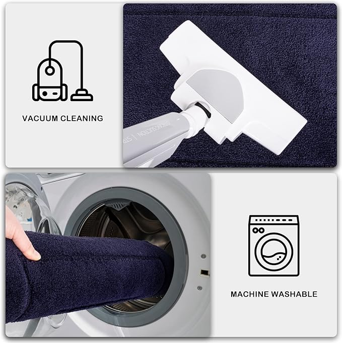 - EASY TO CLEAN: The stain and fade resistant polyester carpet surface can be easily clean by vacuuming. For a deeper clean, machine wash separately in cold water, using mild detergent. Tumble dry, no heat. Do not use bleach or fabric softener. Our door mat will not fade or wear out and will remain like new even after repeated washing.