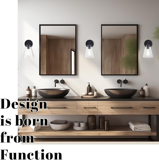 - 🦁【Matte Black Wall Lamps Set of Two】Looking for clean, uncomplicated, fashion-forward and signature styling lighting to brighten up your abode? These wall mounted lamps with dedicate and decorative black and refined clear cone glass shade create a stylish atmosphere.It features a circular backplate and rectangular shade highlighting a simple modern industrial feel.