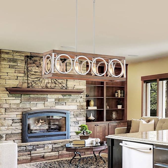 - ADJUSTABLE HEIGHT: This rectangular dining room light fixtures over table can be adjusted as desired to different ceiling heights and available for both sloped and flat ceilings. Hardwired to power source, include all mounting hardware for quick and easy installation.