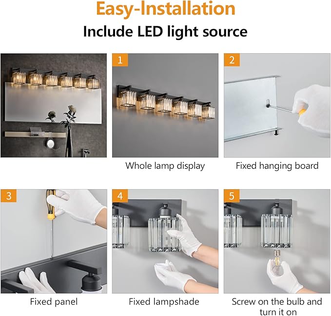 - [Easy Installation] This is designed for American Standard junction boxes and does not require complicated installation procedures. All required parts are included in the package and extra replacement crystal strips are available. Note: For your safety, please install the vanity light under the guidance of an electrician.