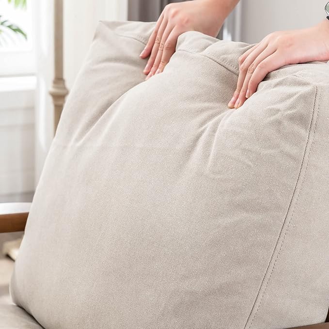 Wahson Mid Century Armchair, Accent Armchair, with Wood Frame and Canvas Cushions, Leisure Slipper Chair for Living Room/Bedroom, Beige