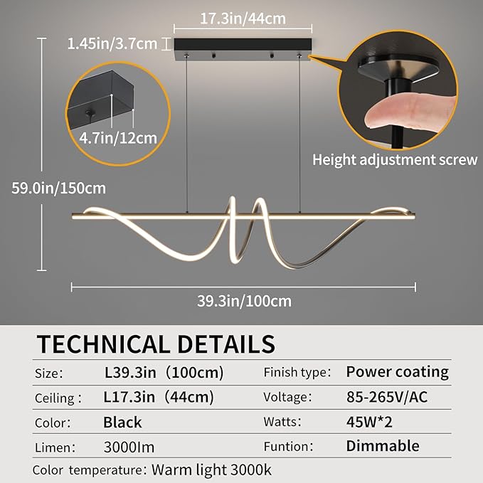 - High Quality and Long Life :Made of high quality aluminum, easy to clean and maintain, the LED light source inside the pendant is extremely energy efficient, consuming up to 80% less power and lasting more than 500,000 hours.