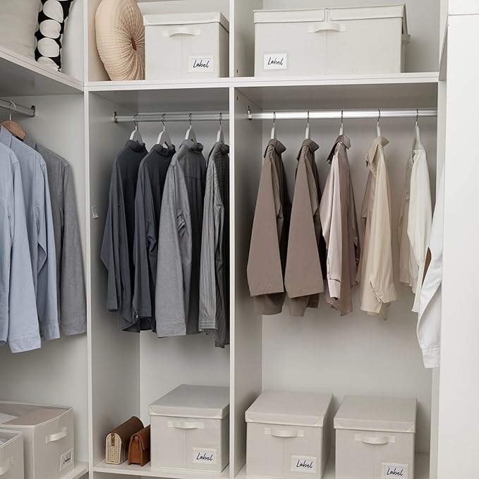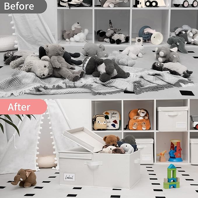 - 【Versatile Function】The large fabric storage box with lid is perfect for organizing the closet, shelf, bedroom, play room, living room, wardrobe, laundry room, office, RV, and camping.