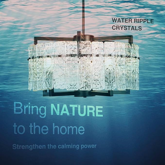 - [ BRING NATURE HOME ]: This round gorgeous Chandelier with 100% handcrafted water ripple glass. The Nature-inspired accessories can Strengthen the calming power of your home. Each glass is unique, mimicking the calming, restorative ambiance of the outdoors.