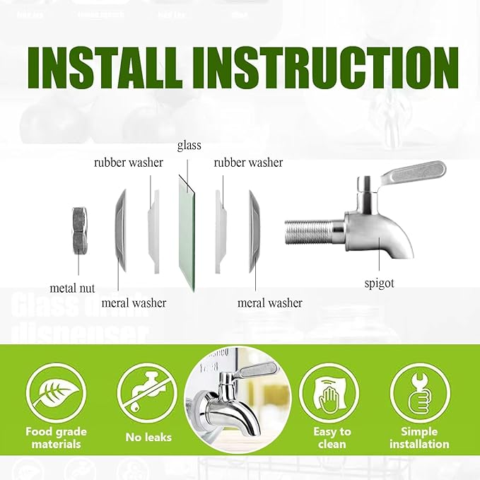 - Package Include:2 Glass Drink Dispenser ,2 Stainless Steel Spigots and Metal Bracket,1 Orange Ring Used As A Wrench.